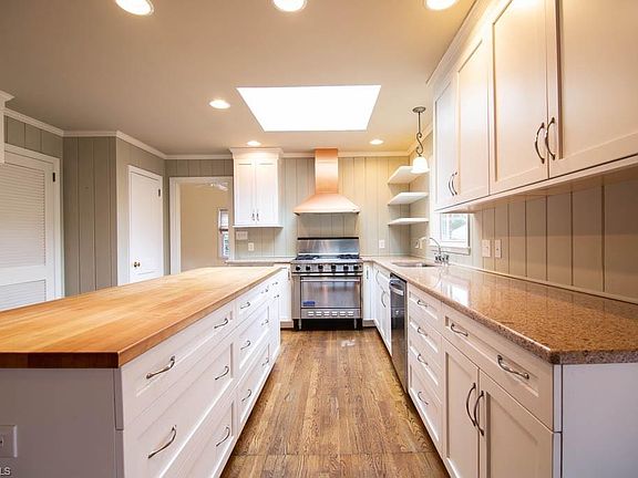 Enjoy sunset views over the pond from this classic brick, one level home. Plenty of space with formal living / dining rooms, plus a keeping room. Renovated chef's kitchen with Viking stove, copper exhaust fan, quartz tops, plus a butcher block center island. Keeping room with fireplace opens to the inviting sun-room which leads to the deck. Master suite addition offers 2 walk-in closets, built-ins and a master bath with steam shower. Office could be 5th bedroom. Walk-in storage and fenced yard.