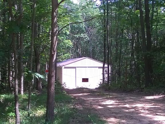 Beautiful wooded 5 acre parcel on paved road in Tri-Lakes/Canadian Lakes area, Mecosta County. Brand new 48x32 pole building fully cemented and 24x24 approach and sidewalk to service door. Parcel features mature oak, maple, other hardwoods and would also be great hunting. Also a great spot to build your home. This is a hard to find property and won't last long.
