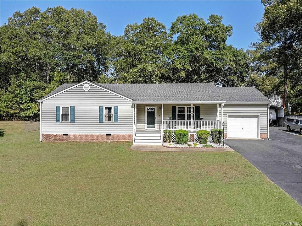 Just listed In Deerfield Estates! Minutes to 288! Wonderfully maintained vinyl sided Ranch home in move in condition. Offering two full baths, three bedrooms, two with ceiling fans! Inviting living room with laminate flooring and gas log fireplace. Spacious eat-in kitchen with tile back splash, smooth top stove, microwave and dishwasher. Covered front porch with easy maintenance vinyl rails and columns. Covered rear deck, in addition to inviting patio. Great for entertaining! Attached garage has insulated, walls, ceiling & garage door. Garage also heated and cooled. Newer roof and heat pump! Oversized paved driveway,New Anderson front storm door. Added bonus--outside 30 amp hookup for RV. Short ride to Pocahontas State Park, great camping, hiking and biking trails. Also minutes away from Harry Daniel Park and First Tee Golfing! Short drive to Ft Lee and Downtown Richmond. Come see your new home!!