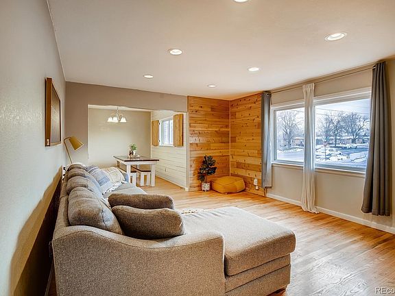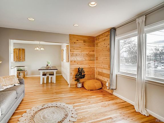 Fully remodeled mid-century ranch with HUGE yard! Step into this gorgeous updated home with built-ins and arched doorways for added character and design! Gleaming hardwood floors in living room, kitchen and hallway. Kitchen boasts granite countertops, newer appliances, open shelving, newer cabinetry, indoor accent shutters, shiplap wall! Beetle kill pine accent walls in living room and entry! Bathrooms fully updated with custom shower tile, fixtures and tile floor. Large laundry area with tons of room for storage! New fencing and large shed added recently for your outdoor storage needs. Retaining wall added to front yard! Nice patio in backyard for entertaining and tons of room for gathering around the fire pit, play area, gardening area and even zoned for chickens! Conveniently located to I-25!