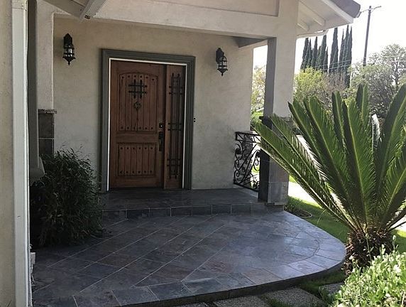 Warm, inviting & super charming describe this lovely single family home. Unique features throughout make it truly a one-of-a-kind. Enter through the custom wood door to a light & bright, open floor plan. Gleaming hardwood floors, fireplace & recessed lights highlight the spacious living area. Upgraded kitchen with adjoining breakfast area & breakfast bar give ample room for entertaining & gourmet prepared meals. Kitchen highlights include recessed lighting, granite counter tops, custom inlaid floors, upgraded cabinets & a built-in refrigerator! On one side of the home, you will find 3 bedrooms (including the master suite) and 2 full bathrooms. The master suite has french doors leading to the expansive back yard & gleaming pool/jacuzzi, hardwood floors, & a master bath complete with a jacuzzi tub, granite top vanity and recessed lighting. On the opposite side of the house is another master suite complete with its own full bath, sitting area, & lots of privacy. Another half bath with convenient access to the yard sits just off the kitchen. The backyard is a true oasis-an entertainers dream-with custom built in BBQ, bar seating, retractable automatic awning, large patio area, custom manicured planters, plenty of trees for privacy, large swimming pool & jacuz