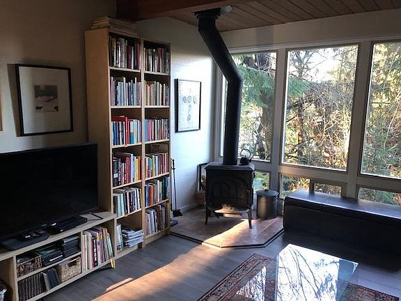 Set above a creek in North Beach. A small wood and glass cottage of 550 sq feet with an unattached 10 x 12 finished studio behind it. Huge Trex deck. Fenced yard. New kitchen. New bath with large walk-in shower. Natural wood built-ins in bedroom. Skylights. Quiet space. good heating plus Jovul wood burning stove . Wood ceilings. Lots of big windows. Sq. Footage includes finished studio. Beach access two blocks away with key. Best as single. Renter is responsible for electricity and anything above normal amount of trash pickup. Pets limited. Dogs need to be well socialized. One car parking. One year lease. No smoking. Will run normal credit check at landlord's cost to include past credit and rental history. Looking for responsible person to maintain their area of fenced property.