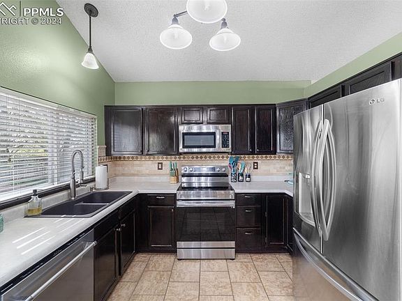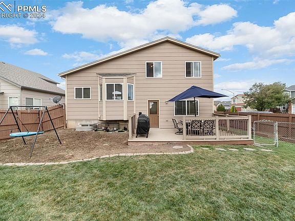 WELCOME HOME to this wonderful 3/3/2 in Fountain! Situated on a lovely, large corner lot, this home is a true 4-level with lots of room to spread out. Enter into the formal living room with abundant light and an amazing view from the front window of the Front Range. The kitchen follows with room to work and plenty of space for an eat-in area overlooking the fully landscaped backyard. Step down to the cozy family room with a fireplace and level access to the garage. Upstairs you will find 3 bedrooms, including the master and en-suite bathroom with soaking tub and separate water closet. The basement level is finished with a large living space, bathroom and storage area, perfect for a 4th bedroom or private guest space. The backyard boasts a large composite deck with a Pikes Peak view, plus apple trees, mature shrubs and herbs, and raised beds for planting. The fully fenced backyard includes a large dog run to the side of the house. This property is located in a quiet cul-de-sac, but conveniently close to military bases, schools, and just down the road from the shopping, restaurants and commercial amenities of the Fountain Mesa area. Don't miss this amazing property. Schedule a showing today and make it yours!