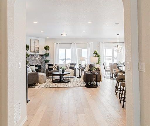 Ranch home- 4 bedrooms/ 3 bath/ 2 car garage with full finished basement! Modern style elevation offered with many amenities and an open concept floorplan. The covered porch leading into the home flows to a large foyer opening to the second bedroom and bathroom and the study giving separation between the master suite and other areas. The Great Room, large kitchen with island and pantry, and additional dining with sliders out to enlarged covered porch are adjoined helping to maximize your living spaces. Kitchen features an upgraded Chef’s kitchen with GE Energy star stainless appliances (gas range, hood, wall micro/oven combo), designer staggered cabinets, large island with pendant lights, spacious walk-in pantry, granite countertops. Master Suite opens to Master Bath featuring a free-standing shower with corian ledge and seat, double sink vanities, private commode, and large walk-in closet. This home also includes a spacious laundry room! Lastly, a full finished basement with 9 ft ceilings gives you extra space to entertain, offering a rec room, game area, 2 bedrooms and a full bath! This home was designed for performance and energy efficiency and has received a HERS score. This home is move in ready. Please contact us to schedule a viewing today. PLEASE NOTE: Photos and videos are of different home/ same floor plan and finishes may vary.