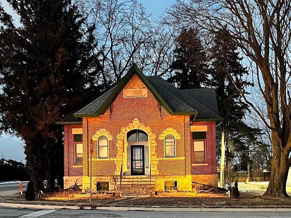 Step into a rare piece of history with this beautiful all-brick schoolhouse, a unique and charming residence set on nearly one full acre of land. Rich with character and architectural detail, the home proudly retains original features, including working transom windows in the entryway. The thoughtfully adapted floor plan offers two full bedrooms, a den with a closet—ideal for a home office, guest space, or flex room—plus finished attic space that adds versatility and charm. The basement provides additional storage, hobby, or workshop potential. A two-car detached garage equipped with electricity and generator capability, an oversized shed with electricity and ample outdoor space for gardening, recreation, or simply enjoying the peaceful setting rounds out the backyard. With 400-amp electrical service, this home is well-suited for modern living while preserving its timeless appeal. This is a truly special opportunity to own a distinctive property that blends history, character, and functionality—something you simply won’t find again.