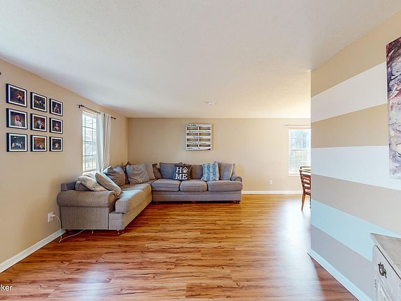This lovely ranch home welcomes you with newly installed laminate flooring throughout the main living areas. Large living room has lots of natural light and is open to a dining area. Lots of flexible space in the back family room with a fireplace that opens to the kitchen. Kitchen has a stainless steel refrigerator and lots of ample countertop space. Laundry room is on the first floor. Home has 3 large bedrooms. Primary bedroom has a walk-in closet and attached full bathroom. Home has 2 full baths and a half bath. Plenty of room for storage in the attached 2 car garage and large basement. Sellers have recently finished the basement. Features include a large open family room, stained concrete floors, and 2 additional finished rooms that could be used for a playroom, office & home gym. Yard is fully fenced and has a large concrete patio. Home is in Oldham County with award winning schools! Don't miss this opportunity to buy this sweet home. It will not last.