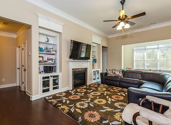 If you like the Model Home You Will Love This Home! Hardwoods in the Main Living Area, Living Room has Built in Bookshelves, Gourmet Kitchen with Double Ovens, Gas Cooktop, Island w/ Beveled Granite Counter Tops & Backsplash. Dining Room has Coffered Ceiling & Wainscoting. Office w/ French Doors. The Master Bedroom has Trey Ceiling, Master Bath has His/Her Sinks, Granite, Tile, Soaking Tub, Separate Shower, WIC. Spacious Sunroom that Leads Out To Patio. Flat Fenced Lot. Storage Space in Garage.