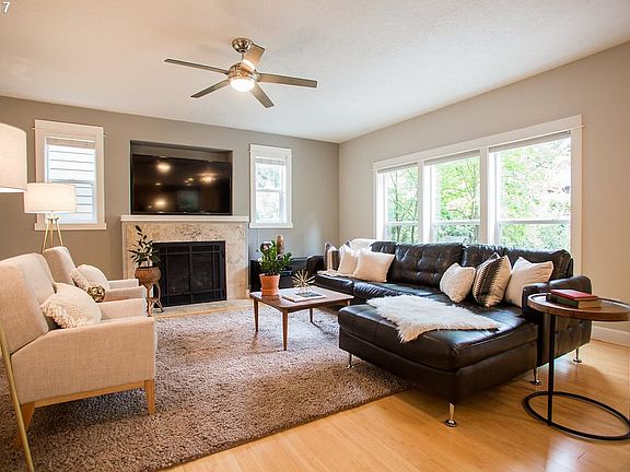 Bright & Spacious Craftsman near Multnomah Village. Gorgeous kitchen w/ ample counter & storage space flows into great room w/ bamboo floors, wall of windows & gas fireplace. Lovely, large master suite overlooking trees w/ jetted soaking tub & walk-in closet. Rare 4 bdrms & 2 baths up plus laundry. Den on main could be 5th bdrm. New AC, updated int paint & landscaping in private backyard. Close access to trails at Woods Natural Area.