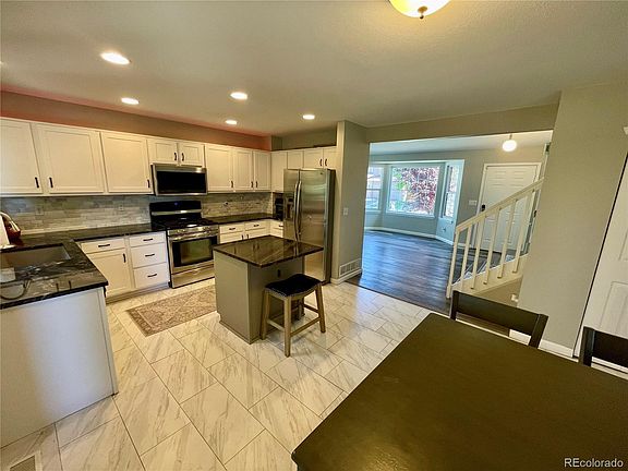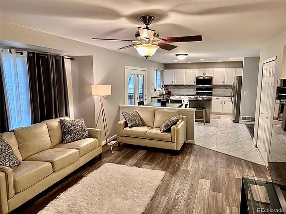 This home features an open, inviting floorplan featuring a recently updated kitchen, paint, and flooring throughout. These upgrades make moving in easy. The unfinished basement is a large area ready to be transformed. The basement has plumbing roughed in to make adding an additional bathroom of your design more simple. The covered deck is perfect for entertaining on warm Colorado nights and provides a perfect oasis even during cozy rainy evenings. The backyard faces Cresthill Middle School field open space and shows an unforgettable view of our beautiful sunsets over the mountains. The local middle and high schools are just around the block and extremely walkable. The home sits within two miles of the grocery stores, the mall, the highways, and walking paths. It is such a fantastic location all around and a bonus that the winter snow melts from the sidewalks out front easily because of the home's orientation. The small HOA quarterly payment includes access to four state of the art recreation centers nearby. Details can be found here: https://hrcaonline.org/facilities It has so much to offer and is ready for a buyer to make this house their new home.