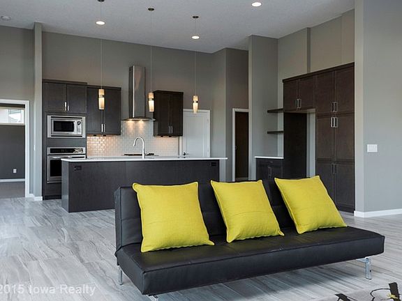 One of a kind contemporary walk out ranch. Very open plan w/large windows. Look out over the rolling hills and pond. See a great view of downtown DSM. Quartz counter tops w/island and breakfast bar. Walk in pantry w/large mudroom and laundry. Master bedroom has tile shower and soaking tub. Must see this home by Marc Kris Modern Homes.