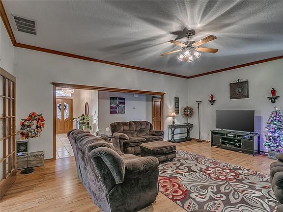 Beautiful well built home on a corner lot in South Lake Estates; Custom built in 1993 from the ground up with touches you just don't find in other homes; Tall ceilings with vaulted ceiling in Kitchen, Dining, and Master both with vaulted ceilings; Very big Livingroom with a wood burning stove surrounded by custom built-ins; Hard surface flooring in every room; Large master bedroom with a vaulted ceiling and door to back yard; Master ensuite bathroom has lots of storage; Walk-in shower AND a jetted tub; 2 sinks, 2 closets, and a sitting vanity; Lots of storage throughout this house; Newer Heat & Air System; Huge covered back patio; Storage shed and Storm shelter in the backyard. Conveniently located near I-44; I-240; Groceries, Entertainment, Restaurants all within just a couple minutes.