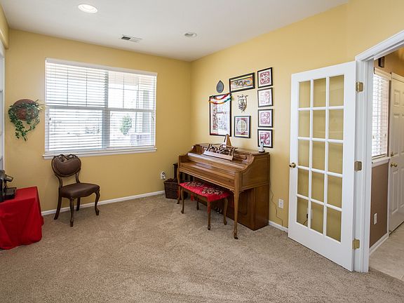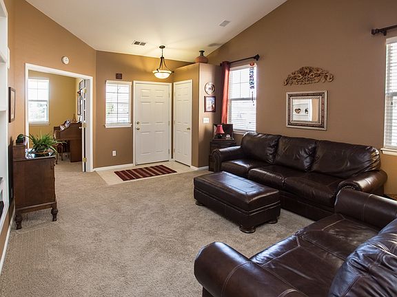 Beautiful ranch home with mountain views backing to a greenbelt and park! Features high ceilings, custom interior paint and a bright kitchen with upgraded stainless steel appliances, quartz countertops, custom backsplash and a brand new sliding glass door leading to the patio. Living room includes custom built-in entertainment unit. Master bedroom offers private bath, walk-in closet and dual vanity. Third non-conforming bedroom or office with glass French doors and custom built-in shelves. Enjoy the professionally landscaped backyard with concrete patio and split rail fence revealing gorgeous greenbelt! Close proximity to schools, shopping, restaurants, a hospital and all major highways, makes this a convenient location!