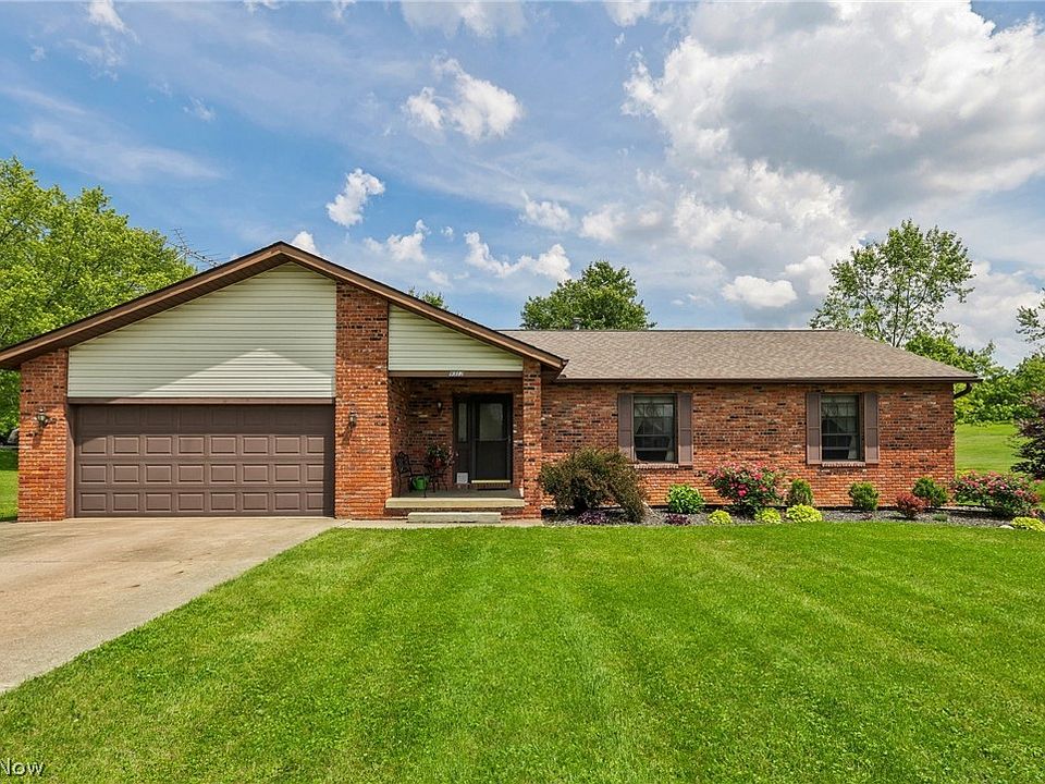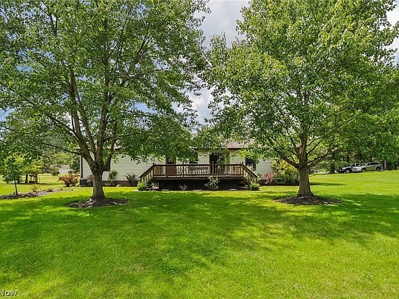 Welcome to this beautifully maintained brick ranch in Streetsboro! This three bedroom, two full bathroom home boasts a spacious layout with large rooms, generous closets throughout and the bliss of first floor living including all the appliances. The kitchen is perfect for cooking and entertaining, ample counter space, storage and room for a large dinette set. The living room features large windows, wood burning fireplace, vaulted ceiling and a sliding door that opens onto a large deck overlooking the well-maintained yard. The home also features a full sized basement with high ceilings for extra storage or potential living space. The roof was replaced in 2018, gutters in 2020, furnace and AC in 2022, hot water tank in 2021 and a bonus parking area on the oversized driveway. With public water, sewer and water softener, you can enjoy all the conveniences of city living while still having a 2 1/2 acre lot for privacy and outdoor activities! Don't miss the over sized shed/outbuilding to store your power tools and enjoy the amazing views!