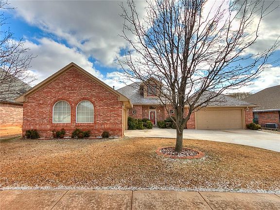 Stunning three bedroom home in Westbrooke Estates with all the extras that you are looking for. Open living area with upgraded wood, crown molding and fireplace with gas logs. Over-sized bedrooms. Landscaping is upgraded with a privacy fence in backyard. Storm shelter in garage. The study has extra built-ins at the front of the house and is a flex room that could be used for other purposes and a bedroom. Kitchen is spacious with a large pantry, new oven, and trendy back-splash. Master is king sized with an extra large walk-in closet, adjoining computer nook, whirlpool tub and dual sinks. This home has four attached garages. You will want to see this one today. It has the space and room to satisfy the picky buyer. This Mustang Schools home has it all. Schedule your showing today and don't miss out on this desirable home.