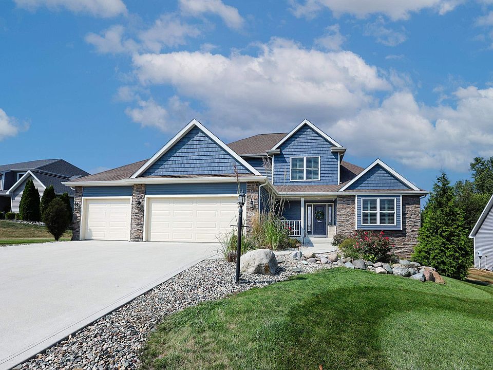 OPEN HOUSE 9/8/24 - 1 TO 3 DON'T MISS THE OPPORTUNITY TO LIVE IN THIS GREAT LOCATION IN PARIRIE MEADOWS SUBDIVISION BUILT BY HELLER AND SONS. THIS IS THE HOME YOU HAVE BEEN LOOKING FOR!! YOU WON'T NEED TO LOOK ANY LONGER!!! You will enter into a nice large foyer and see a meticulious home showing Pride of Ownership!! Enjoy family gatherings in the awesome, spacious 2 story Greatroom featuring a stone to mantel fireplace, maple hardwood floors, and an impressive wall of windows that flood the room with natural light. Make delicious meals in the great kitchen which features Grabill custom cabinets with soft close drawers and doors, island with quartz counter top, back splash, large walk in pantry w/auto light, plenty of cabinets and counter tops, all kitchen appliances will stay, but not warranted, brand new dishwasher, and maple hardwood floors. Spacious breakfast nook with sliding barn doors and maple hardwood floors. Lot's of closets for everyone's stuff!! Nice laundry on the main floor. Auto lights in the laundry room, half bath, and closets. Main level Primary Suite is private and offers a nice big front window with ledge, maple hardwood floors, and ceiling fan. The en suite bathroom offers a dual sink vanity, a deep garden tub, separate tiled shower, and spacious walk-in closet. Upstairs is a versatile landing with three additional generous bedrooms with nice size closets, and ceiling fan/lights and a second full bath. Balcony area overlooks the Greatroom. The finished daylight lower level offers 10 FT ceilings and a dynamic space for leisure and entertainment. Ample room for different areas that can be used as a Workout Rm, den, Threatre Rm, Game RM, & Storage Rm. Home theater room includes a 109" screen, projector, surround sound, and movie theater lights. Gaming area features daylight windows, a Spalted Maple bar counter along 2 walls. Den could have multiple uses. Large 14x12 unfinished room could be used for storage or finished off for a great play room. 3 car garage provides plenty of space for vehicles and storage, and wired for EV charging. Tesla charger does not stay. Additional features include a Hydro sump-jet back up, panel doors, 2 water heaters, 6" walls, Maple Hardwood floors on the main level, & Grabill custom cabinets through out. Enjoy the spacious tree lined private backyard with family, friends, kids, and pets. Nice deck with canopy and lights!! SEIZE THE OPPORTUNITY TO MAKE THIS RESIDENCE YOUR PERFFECT HOM