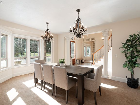 Get away from it all the moment you drive up to this spacious home on 1.21 acres! The vaulted entry welcomes you into a light bright interior. A few highlights include Chef's kitchen w/ cook island, eat bar & lg nook, formal dining rm, living rm, family rm & 2 fireplaces perfect for cozy winter nights. The primary suite is on the main w/3 bdrms, den and enormous bonus upstairs. Scenic surroundings, private yard w/ patio & basketball hoop, huge 3-car garage w/ pull thru. No flood insurance req'd.
