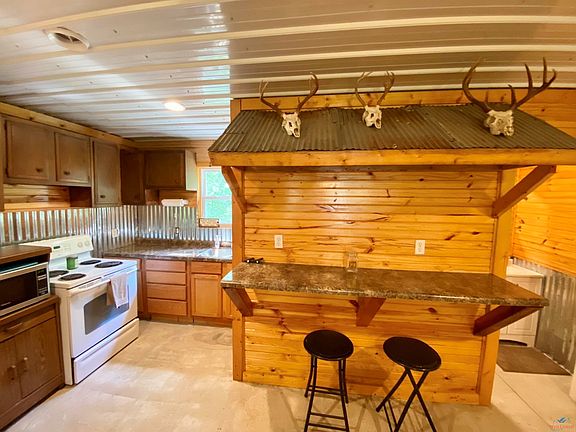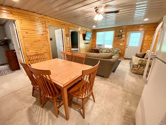 This secluded retreat is back on the market at no fault of the home or sellers! Inside you will enjoy open concept living, 3 bedrooms, and unique rustic finishes. Most of your time will likely be spent outdoors on the 4 acres gathered around the fire pit, exploring the woods, or cleaning fish under the lean-to. This home is located near Talley Bend Public Boat Ramp and corp of engineers land. (source of square foot and measurements by public record)