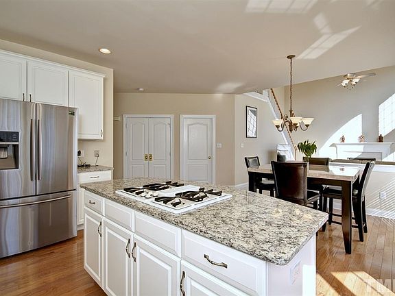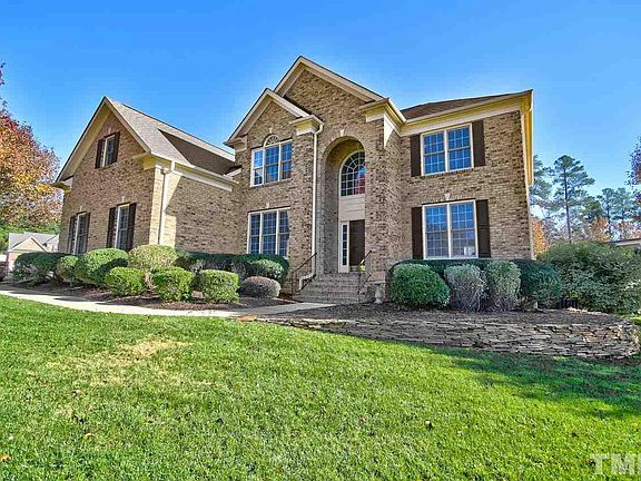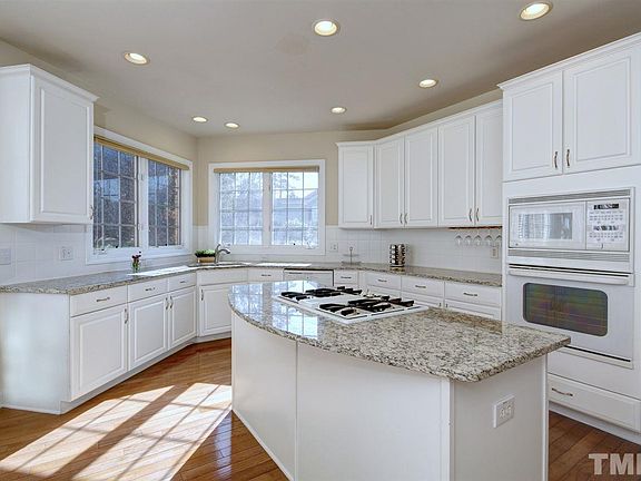 Elegant Brier Creek Estate home. All Brick exterior on a cul-de-sac. The bright kitchen is appointed with white cabinets, gas stove, kitchen island, and granite countertops. The family room has floor to ceiling windows for natural light. Irrigation system. Kitchen refrigerator, washer, and dryer included.