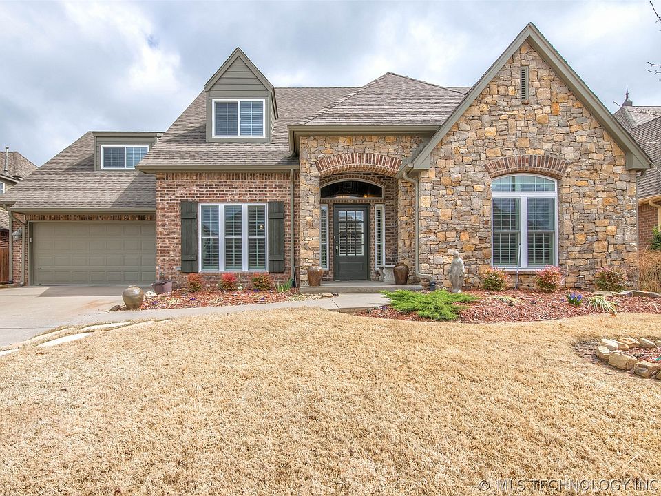 Just in time for summer! Step outside & enjoy this private backyard and take a dip in your pool or enjoy a soak in the hot tub! Inside features master down stairs, open kitchen to great room w/ fireplace, office or 2nd living room, formal dining, upstairs; 3 bedrooms, one with an ensuite bathroom, & game room. New vinyl Pella windows.Gated neighborhood, close to highway, shopping & dining. Jenks Schools!