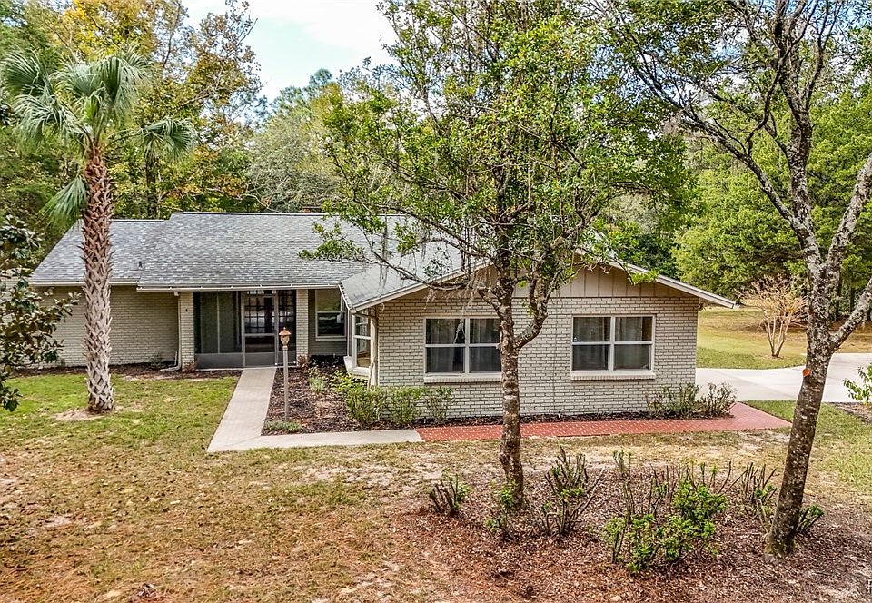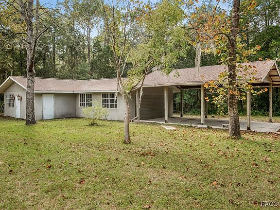 Spacious 3 BR, 2 bath with brand NEW ROOF, very large detached garage and additional car and boat ports. A separate workshop area, attached to the garage, has a half bath, making it the perfect man-cave, art studio, or private office. All located on over 1 ACRE in the desirable Rainbow Springs Woodlands just north of Dunnellon. Enjoy peace of mind with brand new septic drain field currently being installed. The front entry is screened, has double doors and is fully tiled. From there step into a large living room that seamlessly flows into a family room with a brick fireplace. Open to the family room is the well-equipped kitchen with an abundance of cabinets and plenty of counter space for your storage and culinary needs. There is a den/office space off the primary bedroom with access to the family room. Enjoy the Florida weather on the screened porch overlooking the backyard. Additional large bonus room (17x 15), is ideal for a home gym, game room or home office space. Rainbow Springs has a low HOA of $236 per year and includes access to one of the most beautiful springs in the state, the Rainbow River, Clubhouse, Community Pool, Tennis Courts, Pickleball, Billiards Room, Exercise Room, Disc Golf, Restaurant and much more.