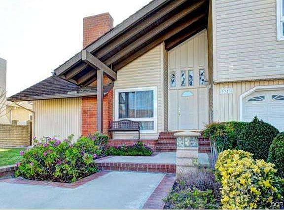 Cypress Beauty!Original owners have lovingly maintained this 5 Bedroom, 3 Bath home. Wonderful curb appeal with brick accents & planters. Stained glass windows adorn the entry. Dramatic step-down living room with 2 1/2 story high ceiling and brick fireplace. Formal dining room convenient to kitchen & living room. Garden view kitchen with separate breakfast area. Glass block adds light to the comfortable family room with wet bar. Convenient downstairs bedroom and bathroom. Elegant master suite with vaulted ceilings, dressing area, dual sinks, and 2 large closets. Expansive 5th bedroom could be 6 or large bonus room. Added features: Central air, dual- paned windows, copper plumbing, & long wearing Tex-cote exterior & siding. Inviting back yard with large covered patio, lots of grassy area, & an orange tree. Direct access to 2-car garage with roll-up garage door and opener. Interior tract location with plenty of close parking. Located very close to highly acclaimed Oxford Academy. Convenient to award-winning Cypress Schools and Civic Center with Library & Tennis Courts.
