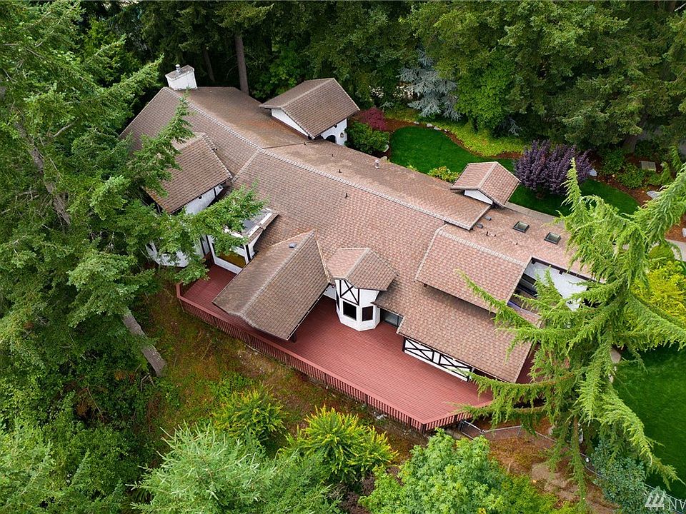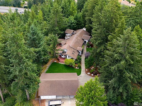 Custom rambler featuring over 3,200sf on 4+acres w/Mt.Rainier view! Updated features blend w/exceptional Tudor Revival architecture creating nostalgic tranquility & an entertainer's dream.Guests will be awed by the portico entrance that opens to the Great Room with beamed ceilings & rustic stone fireplace.Gather in the updated kitchen w/supersized island & heated tile flrs.Huge det gar w/finished studio.Generator hook-up,A/C,& RV parking w/dump.Centrally located magnificent one-of-a-kind home!