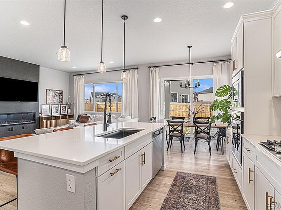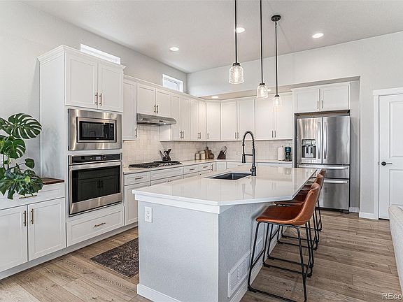 Welcome home to this BEAUTIFUL, unique 4200 square foot ranch/2 story hybrid home! Located in the highly desirable Sterling Ranch, this community is a 5500+ home master planned community. This 5 bedroom, 3 bathroom, 3 car garage home has just about everything you can ask for- the main level features a gorgeous custom fireplace, a luxury kitchen with a walk in pantry, all stainless steel appliances, gorgeous tile backsplash, a HUGE kitchen island with bar seating and a farmhouse sink, and all of the kitchen cabinets you could ask for. Enjoy main level living with the gorgeous master suite which has vaulted ceilings, a HUGE walk-in closet, a double vanity with modern white quartz, and an immaculate over-sized shower with 3 shower heads including an overhead rain showerhead. The main level also features a second bedroom, an extra bathroom with quartz countertops and a shower/tub combo, and a large laundry room! Venture down to the basement and find 3 extra bedrooms, and a large bathroom with a double vanity and tasteful finishes. The enormous living room includes a home theatre screen with a projector, and a barely used wet bar waiting for you to complete with a wine fridge, perfect for pairing with watching your favorite sporting events, family movie nights, etc. There are two large storage rooms in the basement as well. If you thought that was it, you were wrong- there is a 780 foot loft space that is perfect for your home office, man cave, or whatever else you would like to use it for. There is plenty of space to add a pool table, foosball, or whatever you'd like to turn it into a game room. The possibilities are endless with this home! The backyard features a 40 foot long concrete patio. Just out the back door is a covered patio. The large oversized lot has a corn hole area on the side of the home, and the backyard is waiting for you to bring your imagination to life. Come see this home today and you won't be disappointed!