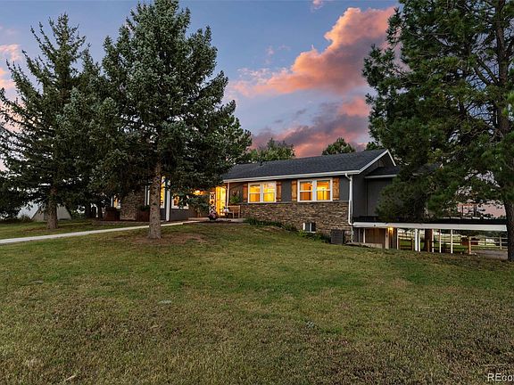 Welcome to your dream ranch in Parker, Colorado, a beautifully remodeled home set on nearly 3 acres of picturesque land, offering the perfect fusion of modern luxury & serene country living. This stunning property boasts meticulously updated bathrooms with modern fixtures, elegant tile work, and natural light, including heated floors in the primary bathroom for added comfort. The open concept living space seamlessly connects the dining & living areas, creating a spacious & inviting environment, perfect for hosting gatherings. Additional features include a cozy fireplace for chilly Colorado evenings, and a hot tub for relaxation and unwinding under the starry Colorado skies. In the heart of this home, you'll find an amazing kitchen, equipped with a gas stove and double ovens that will delight any culinary enthusiast. Outside, you'll discover an expansive lot with breathtaking views of the surrounding natural beauty, creating a peaceful and idyllic atmosphere. The outdoor spaces include a spacious deck & patio area for al fresco dining, BBQs, or simply soaking in the Colorado sunshine. Mature trees and landscaping enhance the property's curb appeal and provide shade and privacy. This amazing horse property also includes a large 2 story barn, storage shed, and 2 car attached garage. Conveniently located in Parker, you'll have easy access to local amenities, shopping, dining, and schools while still enjoying the tranquility of rural living. This remodeled ranch offers the Colorado lifestyle at its finest, and it's waiting for you to make it your own. Schedule a viewing today to experience all that this incredible property has to offer!