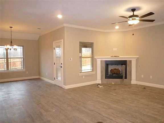 LOOKING FOR A FRONT PORCH? Take a look at this new construction home in Chaffee Crossing! Nice covered front porch plus covered patio. Open living area, island bar, walk in pantry, mudroom with lockers and much more! Access from the laundry room to master bedroom closet and master bath. Freestanding soaker tub, walk in tile shower & separate vanities in master bath. Granite counter tops, stainless appliances. Full gutters, fenced backyard. The last available new home in Highland Crossing. Don't miss out!