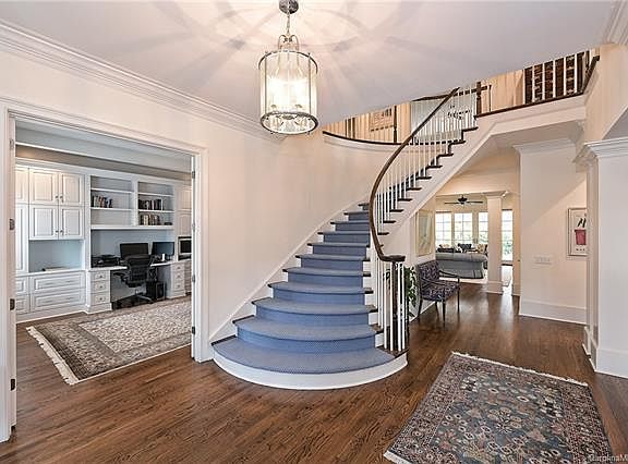 Southern charm & elegance in beautiful gated community! This Simonini built home is absolutely gorgeous! Front entry is distinguished by the white arbor, picket fence & roses. The grand foyer, with distinctive entries to the study & formal dining room, showcases the impressive winding staircase. Beautiful first floor owner suite has large walk-in closet, elegant bath, & direct access to covered veranda. Spacious & stunning great room with gas fireplace, custom built-ins, and glass doors that open to veranda. Fabulous kitchen with butler's pantry & sunny breakfast area. Upstairs: large bonus room w/surround sound & private bath; three secondary bedrooms, each w/private full bath; & home office w/built-in desk & cabinets. Rear steps lead to private guest suite with full bath & preplumbed for kitchen. Fabulous outdoor living space - covered veranda, stone patio w/inground pool & hot tub. Two-car garage plus a second one-car garage. Home is immaculate - too many special features to list!