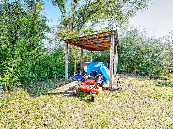 With plenty of space outside, there is also a tall covered pole barn that is perfect for covered parking on boats, rvs, lawnmowers, etc.