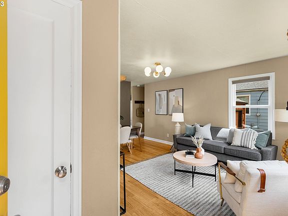 This well cared for Bungalow is light, bright and lives large. Blocks from Portsmouth and university park, coffee shops and restaurants. Northgate park is 1 block west and will be the site for North Portlands new aquatic center. Fig, peonies and Lillies are just a few players in the beauty that greets you as you make your way into this classic Portland home. You are met with a very livable layout consisting of 2 nicely sized bedrooms and 1 full bathroom on the main level. The Kitchen is is flooded with natural light from a full glass door and large window looking into a dreamy backyard for any gardener or entertainer. Rich oak hardwoods throughout the main and fir floors on the upper level. Newer windows with transferable warranty. A private primary bedroom is located upstairs with large closet. The full basement with with ample headroom makes a great secondary living space. Through the kitchen into the backyard you will find an amazing gold certified backyard habitat equipped with a covered patio, bountiful veggie garden and fruit trees. [Home Energy Score = 4. HES Report at https://rpt.greenbuildingregistry.com/hes/OR10204132]