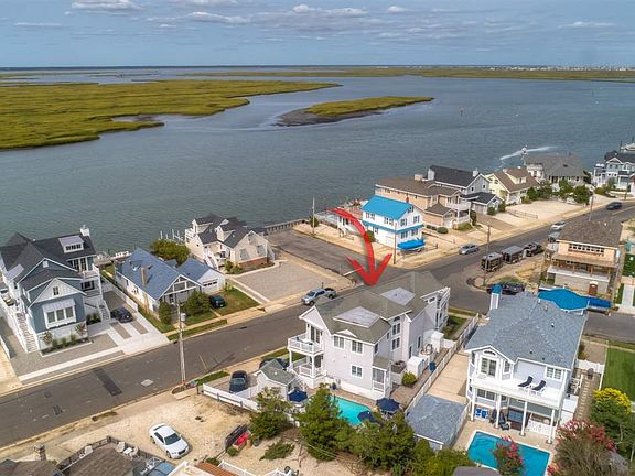 THE MOST AMAZING BAY AND UNOBSTRUCTED SUNSET VIEWS FROM ALL THE DECKS AND ALMOST EVERY ROOM IN THE HOUSE! This contemporary Stone Harbor bay-side home sits just across the street from 93rd Street and the inter-coastal waterways of beautiful Stone Harbor. This large four bedroom, four and one half bath home is designed to maximize land usage, with a huge private pool and cabana area; all while maximizing Sunset Drive frontage and un-obstructed bay views throughout the entire home. Here you are located just two and a half blocks to the pristine beaches of Stone Harbor at the same time you are within walking distance to the coveted central business district to the South. Entering the home you have a gracious foyer with high detail, crown molding, trim and mill-work, highlighted by beautiful Pine hardwood floors throughout. This upside down design boasts boasts 3 full & spacious bedrooms on the first floor down the main corridor, one with private balcony access over-looking the bay. To the right of your grand foyer, toward the South you are met with a spectacular family room and private wet-bar. With ample Southern light you have large windows, a built-in wet- bar with wine chiller, sink and plenty of cabinet space. A large slider door leads you to a hard-scaped paradise that is extremely private and spacious for evening entertainment, or basking in the Summer Sun by your private in-ground pool. Enjoy cocktails and spirits from your private pool-side cabana that has plenty of counter space, a sink and large under-cabinet beer fridge. Moving up through the grande foyer you get the sense of a great light well with large ceiling high windows, beautiful accent light fixtures and you are graciously introduced to the public spaces toward the North of the Home. The family room and large dining room intricately are married through vaulted ceilings, hardwood floors throughout, and great bright windows facing the West. Meticulously designed and maintained you get a feeling of intimacy in these spaces that is un-matched on the island. Meticulous trim and mill work are placated in the beautifully coffered vaulted ceilings in the living room. Beyond the sliding doors onto the balcony you are met with stunning perched westerly views over the inter-coastal. These Unobstructed views span all the way West toward the Garden State Parkway. The kitchen is designed to maximize counter space with L shaped peninsula with three bar stools. The kitchen offers upgraded Viking appliances recessed and under-cabinet lighting all highlighted by crisp snow-white cabinetry and crown molding. There is plenty of storage with a pantry room connected to the kitchen space. South of the grande foyer is the private master suite, with private South facing balcony and ample Southern light. The master bath is tiled in marble and offers a large Jacuzzi tub, stand up glass shower, and his and her sinks. This meticulously maintained Home maximizes all that Stone Harbor has to offer, with close proximity to the Beach and the Bay, Private Pool and Cabana; all while being within walking distance to world class dining, shopping and entertainment.