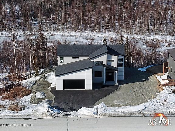 Overlooking cook-inlet kettle wetlands, you stare at a spectacular view of the winter mountains. This property captures the virtuous beauty of the wintertime Alaskan mountains in every window of the house! GORGEOUS! Approximately 42 commute miles to Anchorage, this home is elegant and modern, with tasteful bathroom tiles, black accented features, & a beautiful kitchen. Even has two ovens! BTVSpacious bedrooms, and a relaxing primary suite with a stand-alone soaker tub, oversized shower, double sinks, and a walk-in closet. Buyer to verify all information within and beyond.