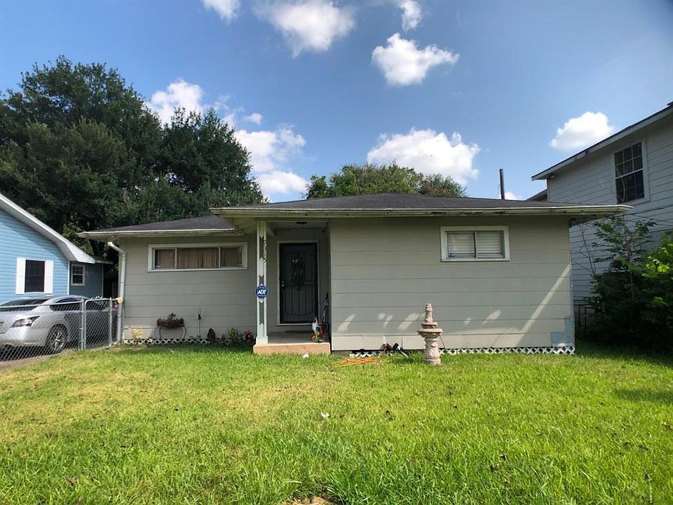 Welcome home! 3 bedroom 1 bath that DID NOT FLOOD DURING HARVEY (per seller). All bedrooms have beautiful original hardwood floors (Check pictures for flooring in the rest of the house) Be sure and check with your agent about driveway and garage split before making any offers. Great price for a home so close to 45! Home is being sold as is with no repairs by the seller, great opportunity to flip or use as a rental.