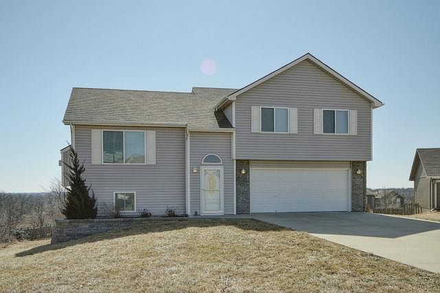 Darling 3 bedroom 2 bath side by side split with finished walkout basement offers you 1500 sq ft of living space. Ideal floor plan for entertaining with the open kitchen/dining/living combo! Dining area also opens to your deck with views of the countryside. Great curb appeal, 2 car garage and Liberty schools with a KC address make this home perfect for a growing family. Easy access to I-35 and I-435