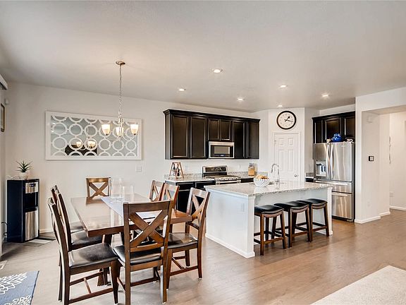 Excellent brand new energy efficient two story home in Buffalo Highlands. Outstanding open kitchen with 36" upper cabinets, stainless steel appliances, granite countertops, gas stove, large kitchen island with a breakfast bar and sink. Modern plank vinyl flooring in entry, kitchen & dining area. 2 large secondary rooms upstairs with 2 loft areas, conveniently located upstairs laundry room. The master suite has 2 linen closets and an amazing shower. Tankless hot water heater and stamped concrete window wells in basement along with 9 foot ceilings in basement. Quick and easy commute to DIA, I-70 and downtown. 1-2-10 Builder warranty is included.
