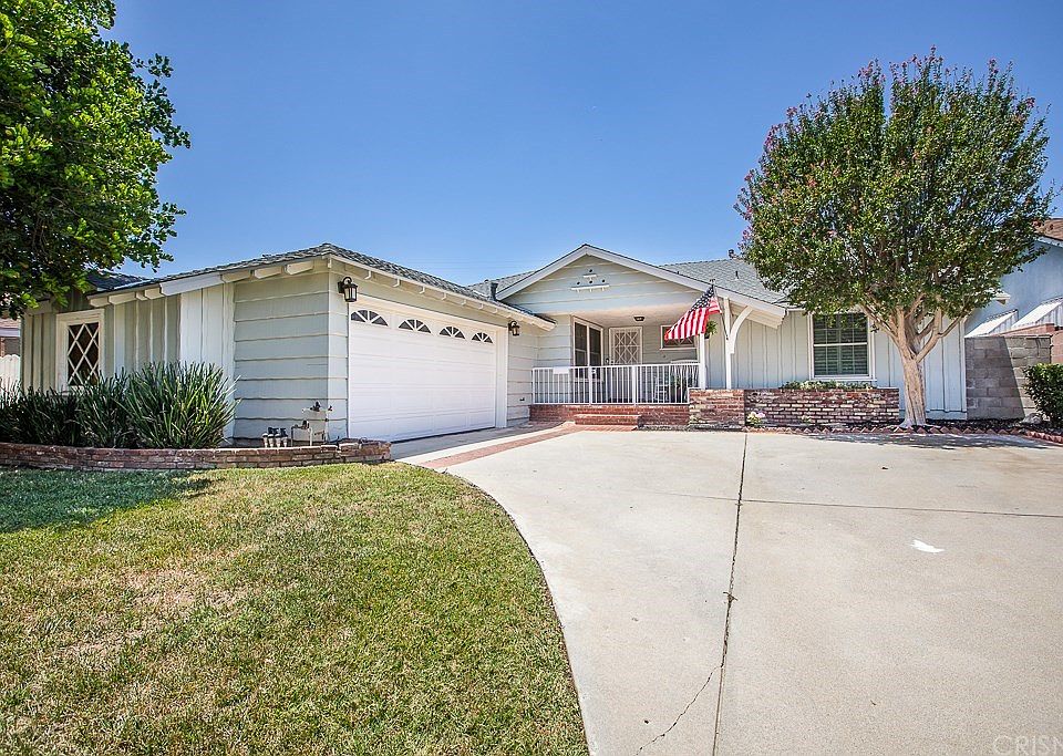 Located within the desirable "North Hills West" neighborhood, this mid-century ranch style home has been meticulously maintained and offers exceptional curb appeal, including mature landscaping, brick hardscape and a welcoming over-sized front porch. Inside you will find a bright open floor plan, with hardwood floors, smooth ceilings, crown molding, newer double-paned windows, recessed LED lighting, and Smart Home technology. The spacious living room, featuring built in cabinets, surround sound system and cozy brick fireplace, looks out through the sliding glass doors to a beautiful entertainer's yard with a huge covered patio, perfect for outdoor dining, a generous grassy area, fire pit, newer landscaping and block walls. Adjacent to the living room is an eat in kitchen as well as a dining room, large enough to host holiday gatherings with your extended family. The master bedroom offers newer carpeting, ceiling fan, wood shutters, ample closet space and an en suite bathroom with vintage tiled stall shower and vanity. Two additional family bedrooms also include newer carpeting, ceiling fans, and ample closet space. The hallway bathroom has been beautifully updated with a dual sink marble top vanity and custom tile shower/tub. Other improvements include a brand new roof, newer central air/heat, copper plumbing, updated electrical panel and automatic sprinklers. You'll love this immaculate move in ready home conveniently located near shopping, restaurants, 405 fwy and schools.