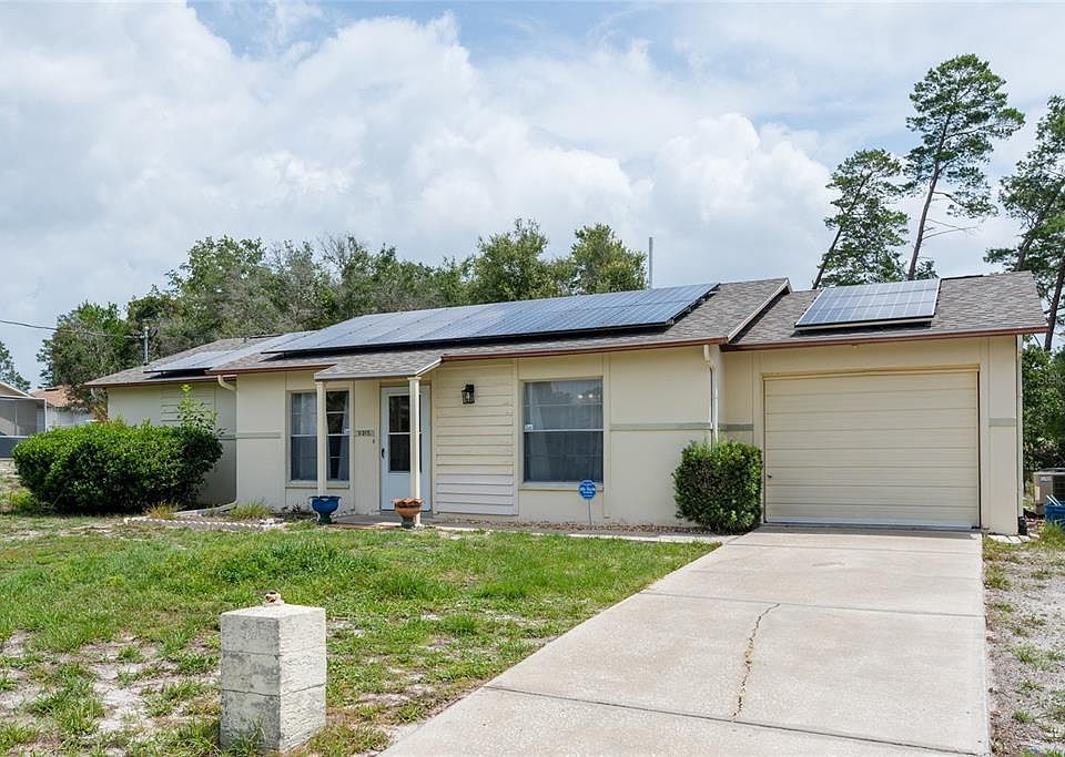 If you are looking for your first home, downsizing from your current home or looking for an affordable investment property, this home checks all the boxes. As you arrive at the home you will notice that there are solar panels on the roof. No electric bill and solar panels will be paid in full! As you enter the home you can see that it has an open split floor plan and there is new flooring throughout the home. Each bedroom has a full bathroom. The kitchen has new cabinets also, range, microwave and dishwasher are new. There is a cute patio looking into a wooded preserve in the backyard. This home has a brand new roof just replaced in May 2023! Septic tank was pumped in October 2022 and the AC was replaced in 2018. This home is very close to many shops and restaurants. Just minutes away from Gulf Beaches and many parks including the Mermaids at the world famous Weeki Wachee Springs Park. If that is not enough, there is no HOA! This home is vacant and ready for a new owner!