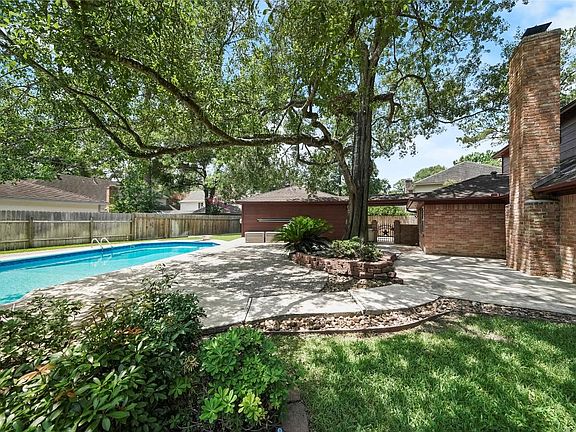 Spacious Tudor styled 2 story pool home in sought after Champion Forest neighborhood. Original owner has updated most the windows with dual pane Pella Windows (except leaded glass that give it character), roof replaced in 2007, AC 2012, Generac Generator less than 5 years old. This home has 4 bedrooms, 2.5 bathrooms, 2 car detached extra deep garage with remote controlled opener. Beautiful backyard with large oak tree, great for entertaining. Wonderful 7 acre Champion Forest park nearby with walking trails, soccer fields, picnic & playground. Near hospitals, schools, shopping, Hwy 249 & Tomball. Shown by appointment.