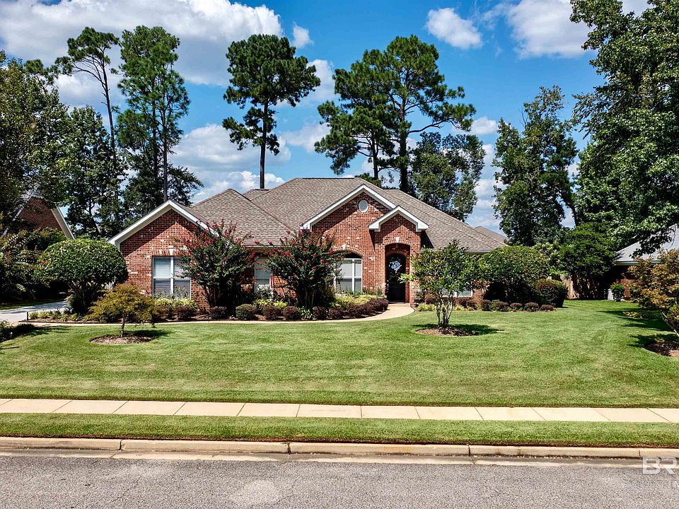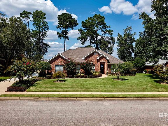 Welcome to Sehoy, one of Daphne’s sought after neighborhoods on the Eastern Shore of Mobile Bay. This custom-built all-brick home was built in 2002 by a respected builder as his personal residence, showcasing exceptional quality and thoughtful design.The exterior features beautifully manicured landscaping with full irrigation in the front and back yards. A privacy-fenced backyard creates a serene retreat with a screened-in porch finished in clay tile flooring and an additional open patio great for entertaining. A detached shed with power offers flexibility as a workshop, office, or storage. The side-entry 2-car garage includes shelving, a sink, and a rare attic lift system for easy access to storage. Inside, soaring 12’ ceilings in the main living areas and 9’ ceilings throughout create an open, airy feel. Architectural arches, custom trim, and hardwood flooring in the main spaces add elegance. The oversized great room features a cozy corner gas log fireplace, while the formal dining room off the foyer offers more space for gatherings The gourmet kitchen has custom cherry cabinetry, granite countertops, stainless steel appliances, a breakfast bar, walk-in pantry, and a sunny breakfast room.The split floor plan provides privacy for all. The spacious primary suite overlooks the backyard and includes dual walk-in closets & a spa-like bath with dual vanities, a marble walk-in shower, and private water closet. Two additional bedrooms share a Jack-and-Jill bath, each with its own walk-in closet. A laundry room with built-ins is conveniently located off the garage. Freshly painted & meticulously maintained, this home also features 2” plantation blinds throughout. New roof in 2019. The home blends craftsmanship, comfort, and convenience in one of Daphne’s most sought-after neighborhoods.Note: Original fan shades installed before closing; fan & drapes in great room do not convey. Buyers to verify all information deemed material to the buyer. B Buyer to verify all informatio