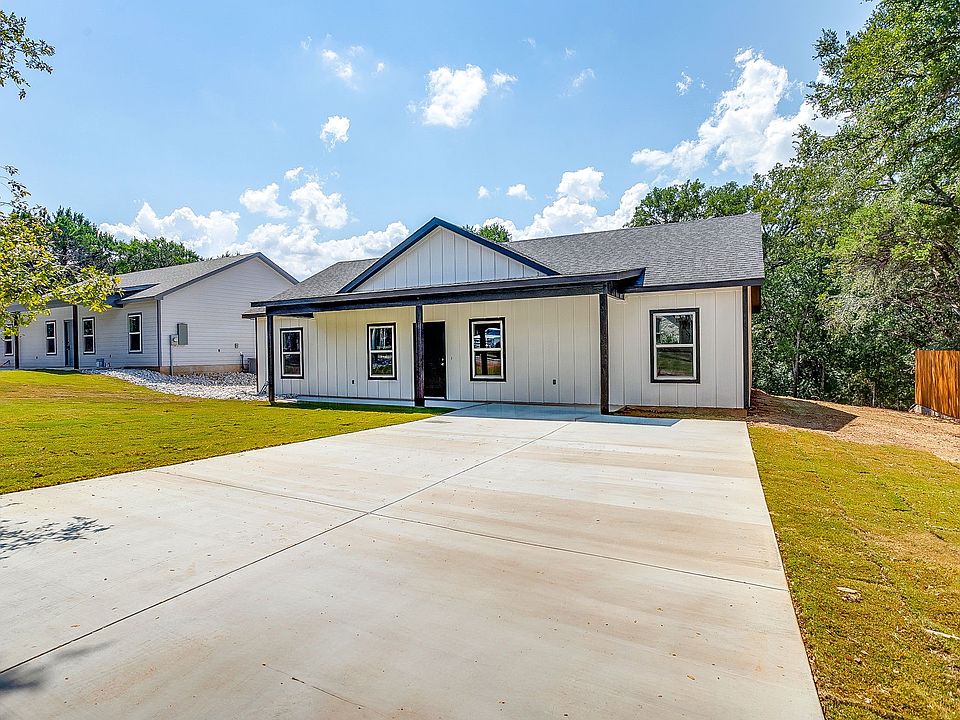 NEW BUILD RECENTLY COMPLETED. Nestled on a beautiful, heavily treed lot, this stunning new build offers the perfect blend of modern finishes and peaceful surroundings. Featuring an open floor plan, this home is designed for both everyday living and entertaining. Inside, you'll find quartz countertops throughout, a spacious kitchen with a large island and overhang seating—ideal for casual dining or gathering with friends. The luxury vinyl plank flooring adds durability and style to the main living areas, while plush carpet in the bedrooms ensures cozy comfort. Enjoy indoor-outdoor living with both a covered front porch and a covered back porch, perfect for relaxing or hosting year-round. Retreat to the primary suite, which boasts a freestanding soaking tub, a separate walk-in shower, and thoughtful design for a true spa-like experience. Don't miss this opportunity to own a beautifully crafted home surrounded by nature!