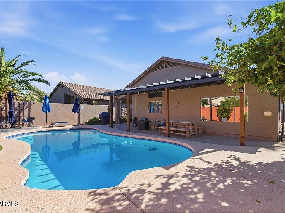 This move-in-ready Augusta Ranch home located in a golf course community checks every box—single level, open concept, and loaded with upgrades. The kitchen shines with new appliances, quartz counters, and a stylish island overlooking the great room. Both baths were remodeled in 2022, adding a touch of luxury. Step out to your private oasis with expansive covered patios and a sparkling heated pool designed for relaxation and fun. Minutes from golf, dining, and easy freeway access—this one's the total package!