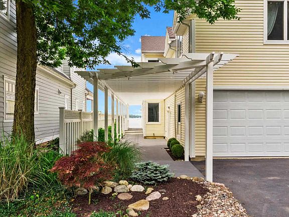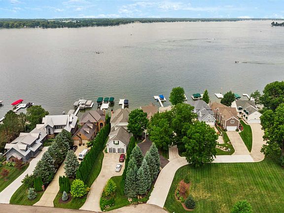 Get ready for AMAZING sunset views on Lake Wawasee from this incredible contemporary 2-story w/ walk out finished lower level featuring wet barâthe ultimate lake home / 4 beds & 3 full and 3 half baths! Located on the quiet no outlet Woodys Lane on the east side of the lake, this spot is guaranteed to transport you to a calming resort-like living atmosphere. Well-maintained from the outside in, exterior is sharp w/ precision landscaping, additional parking on apron & pergola covered side patio leading up to entrance w/ steps down to waterfront. Impeccable interior is spotless w/ FABULOUS lake views from multiple large bay windows & French doors. Open concept living/dining/kitchen w/ walk-out patio & wrap around windows providing a bright happy space w/ beautiful wood floors. Kitchen features lots of gorgeous hickory cabinets, SS gas range & microwave (hidden refrigerator & dishwasher blend w/ cabinets), walk-in pantry & breakfast bar; laundry room w/ utility sink & more cabinets. 2nd floor master is truly stunning w/ wooden cathedral ceiling & exposed beams (plus ceiling fan), large walk-in closet, double vanity w/ sizable soaking tub & breathtaking private covered balcony w/ exceptional views. All bedrooms are good sized w/ ample storage throughoutâwonderful for entertaining or large families! Incredible updated lower level w/ new carpet (& stairs) & fresh paint w/ stone gas log fireplace, wet bar & fridge, leading out to covered bottom patio which opens up to open air, multi-level patios. Other updates include new pavers (both patios/walk), furnace & windows/French doors. So much space to relax & enjoy the breeze off the lake, BBQ or sun bathe. Comes w/ pier & 49â of lake frontage on sandy beach. Oversized garage for additional storage PLUS includes 2 lots (each about 100 x 175) for storage bldng & guest houses. Lake Wawasee is an all sports lake w/ lots of waterfront dining options as well as nearby Syracuse-Wawasee trails & golf clubs. Make Pier #255 your home!