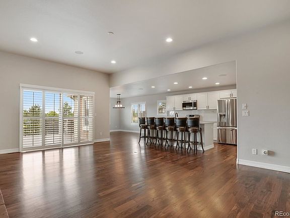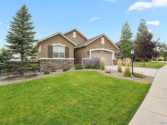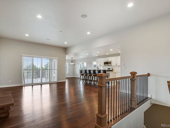 Gorgeous home in Cordera on large, premium lot & backs up to open space w/ a neighborhood park & breathtaking view of Pikes Peak. The yard is professionally landscaped & a sidewalk from the front to the backyard patio, huge lawn and newly extended one of a kind trex deck. Just refinished Walnut hardwood floors & all new carpet throughout and new furnace. Custom built-ins in living room, upgraded appliances, bronze fixtures, whole house audio, & custom Hunter Douglas shutters on all windows & doors. As you enter you will experience the quality craftsmanship and contemporary styling. The stone fireplace w/ maple mantle anchors the great room. Enjoy the fantastic mountain views from the expansive sliding glass doors. The kitchen is loaded w/ upgrades, including Whirlpool appliances, a gas range, and Zodiac quartz countertops that a beautiful sophisticated surface that is carefree maintenance & scratch resistant. The Mastercraft cabinetry features dove tail drawer construction and crown molding detail. Moonstone sink, under cabinet lighting & the custom tile backsplash. The luxurious expanded master suite is spacious & comfortable. Additional windows were added to in more natural light and a view of Pikes Peak. The 5 piece bath ensuite / double vanities, shower with seat, jetted tub & a generously sized walk-in closet. The other 4 bedrooms are all spacious (two on the main level, & two on the basement level) w/ lots of windows allowing natural light. The laundry room is is on the main level & has a closet and cabinets for storage. The recreation room in the basement is huge & very functional to accommodate with a projector & big screen for those footballs games & enjoy the classy added wet bar to serve your guest! This home is made for entertaining. Incredible Colorado outdoor living in Cordera & is known for a wonderful community center, pool and parks. Close to military bases, great schools & shopping along the Powers Corridor. Don't miss this one.