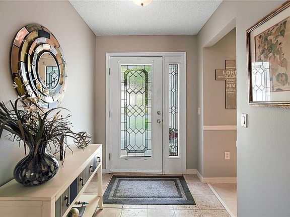 Pristine 3/2 Block and Stucco Dogwood (Jasmine) in Woodbury. NEW ROOF. BOND PAID. ENCLOSED, TILED lanai. Enhanced and mature landscaping provides beauty and privacy. Block/Stucco exterior, rock beds, and front porch create excellent curb appeal. Tiled entrance foyer with decorative glass front door and side panel. Spacious kitchen with tile floors, maple cabinets, extended cabinets/counter space, pantry, and eat-in area. GAS COOKING available. Volume ceilings throughout the spacious living room and dining room. SPLIT floor plan. Large master bedroom has walk-in closet and en suite bath with double sinks and walk-in shower. Bedrooms 2 and 3 have double closets. Bathroom 2 has tiled shower/tub combo. Living room has sliding door to ENCLOSED, TILED LANAI surrounded by enhanced landscaping for a rare level of privacy. Indoor laundry room with maple cabinets. Partially furnished. NEW ROOF (2019). HVAC replaced 2018. The Village of Woodbury is close to Nancy Lopez Legacy Country Club and Championship Golf Course, Mulberry Regional Recreation Center, Neighborhood Pool and Recreation Center, Springdale Fitness and Walking Trail, Mulberry Dog Park, Shopping, and Restaurants. PLEASE WATCH OUR VIDEO OF THIS BLOCK-AND-STUCCO HOME!