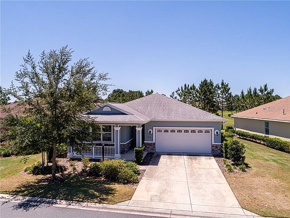 This 2 bedroom, 2 bath, with flex room and 2 car garage, Saxony built in 2015 is all about the views! Come home to this inviting home, that has no rear neighbors and sweeping views of the dry retention pond in Windsor East. The home features tile in all of the wet and living spaces with carpet in the bedrooms. The kitchen is an open concept with staggered natural wood cabinets topped with crown molding and solid surface countertops. You will enjoy plenty of storage with a walk in pantry, extra cabinetry in the laundry room, and a bonus drop zone in the garage entry area. As an added bonus, the 2 car garage has a built in workshop table space. Some extra features include: Front porch and beautiful screen lanai at the back of the home, retractable front door screen, instant hot water maker, two car garage door that is insulated, custom blinds throughout the house, five upgraded ceiling fans and irrigation system. Located in Ocala's premier, gated, 55+ community, loaded with amenities, including golf cart access to two shopping centers.