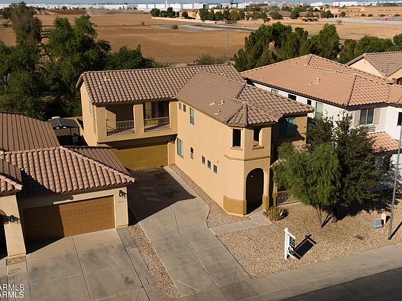 Be the proud owner of this property in the heart of Tolleson! Welcoming living room, wood-look & carpet floors, neutral paint, and powder room. The eat-in kitchen has a center island, granite counters, a walk-in pantry, New SS appliances, and white cabinetry with crown moulding. The sliding glass doors in the family room merge perfectly the indoor/outdoor living areas! Upstairs, you'll find the sizable bedrooms and a built-in desk ideal for a tech center. Double doors open to the large owner's suite to find French doors to a private balcony, a high vaulted ceiling, and an immaculate bathroom with dual sinks, walk-in closet, and separate tub/shower. The backyard boasting a covered patio, grass area, and firepit is ideal for fun weekends. Move-in ready!