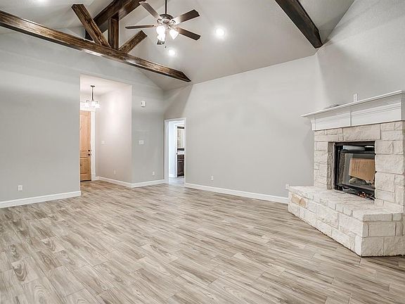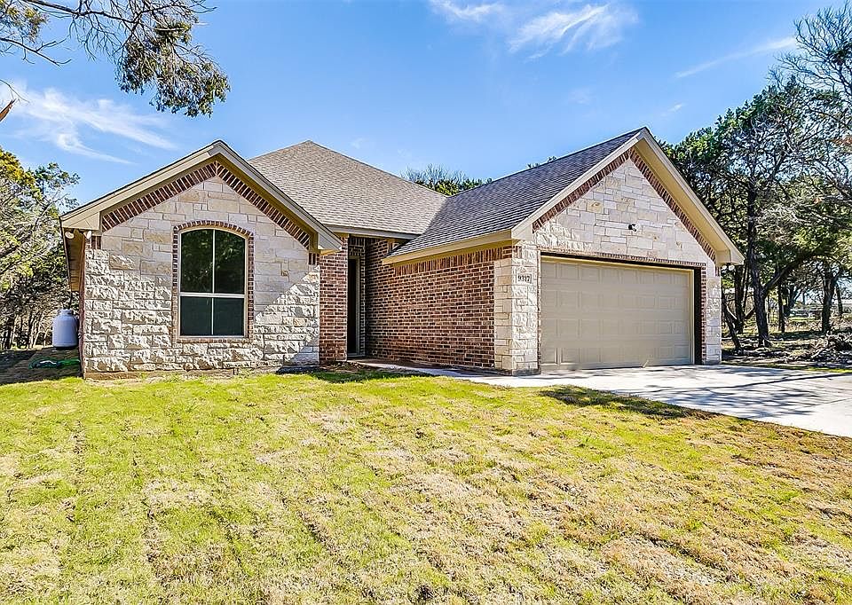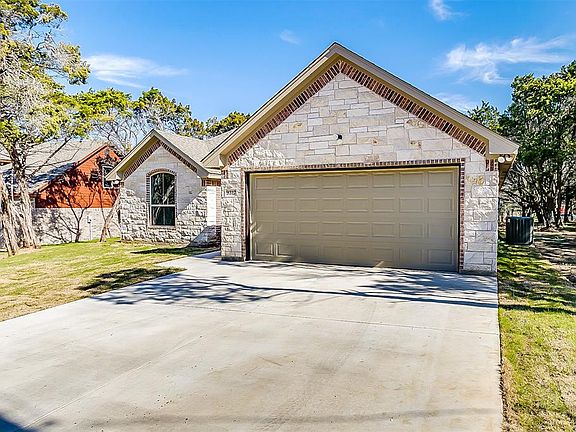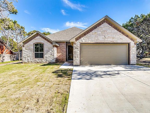 Come live on the mountain and enjoy the beautiful natural surroundings this home offers! Boating, fishing, or taking a peaceful stroll along the Brazos River awaits at nearby Hamm Creek Park. So many wow factors and special touches will greet you in this beautiful home, including web truss beams in the living area. Great flow throughout with open concept kitchen and living area and a split bedroom floor plan. Granite counters in kitchen go beautifully with the rich cabinets and light paint colors. Master retreat also features the classic beams. Master bath has walk-in shower, soaking tub and walk-in closet with built-ins. Custom trimmed out windows allow for beautiful views of the surrounding native trees.