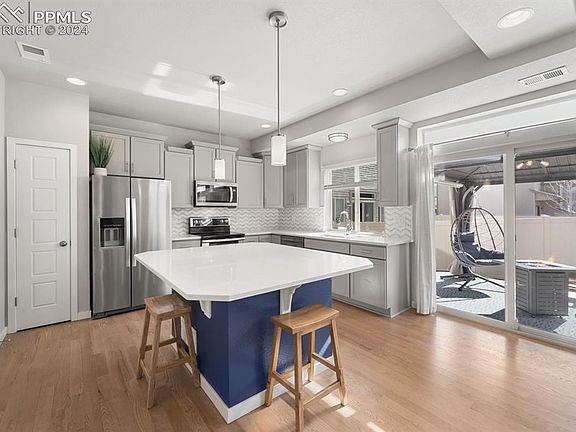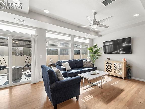 This upgraded home is now available from its original owner! It is the only home the builder allowed upgraded wood flooring to be installed, but the upgrades don’t stop there! The Gourmet Kitchen offers an oversized island with Quartz Countertops and the Stainless Steel Appliances include a double oven! The concrete patio was increased to nearly Triple the original size and includes a Pergola with electricity and curtains! The 3 bedrooms are all on the same level as the generous laundry room and the Master Bathroom flaunts a heated tile floor and oversized standalone shower! Located moments away from the Banning Lewis Ranch amenities of a pool, fitness center, and pickle ball courts! Schedule a tour of this home before it sells!